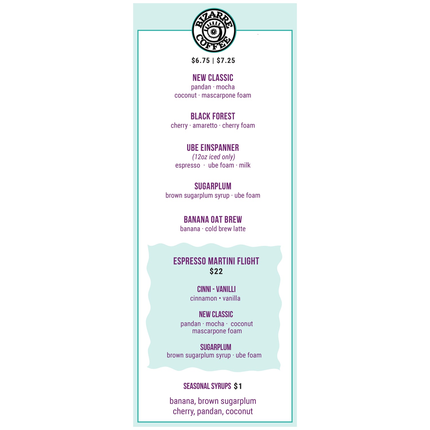 • Bizarre Coffee Parking – Limited parking is available behind our building in designated spots.