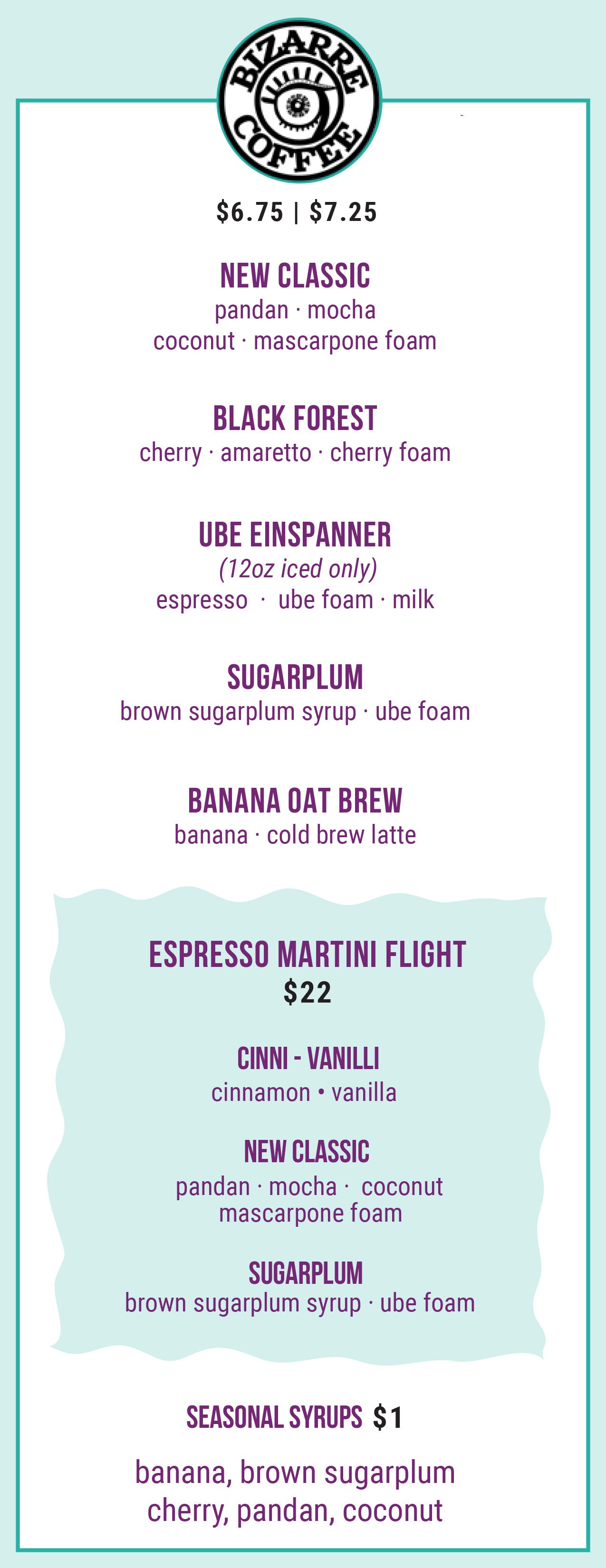 At our Roswell, GA coffee shop, you’ll find a colorful, roomier take on Bizarre Coffee that is designed for lingering. Expect specialty espresso, seasonal latte drops, and a space that feels equal parts cozy + elevated (with plenty of seating to settle in). Whether you’re coming from Roswell, Alpharetta, Sandy Springs, Marietta, or Atlanta, this spot is your go-to for good mood juice, community, and a little everyday magic.