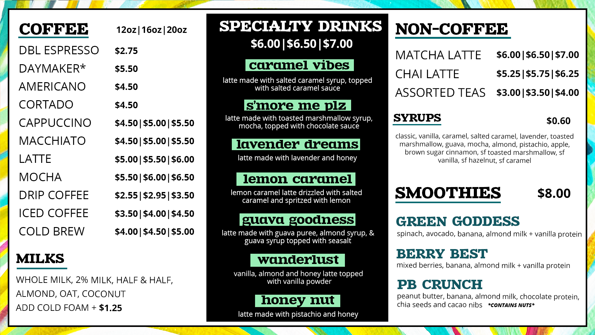 Our new seasonal menu designed to guide you through the transition of fall, each sip layers cozy warmth and bold flavors hand crafted for lingering afternoons, crisp evenings, and everything in between.